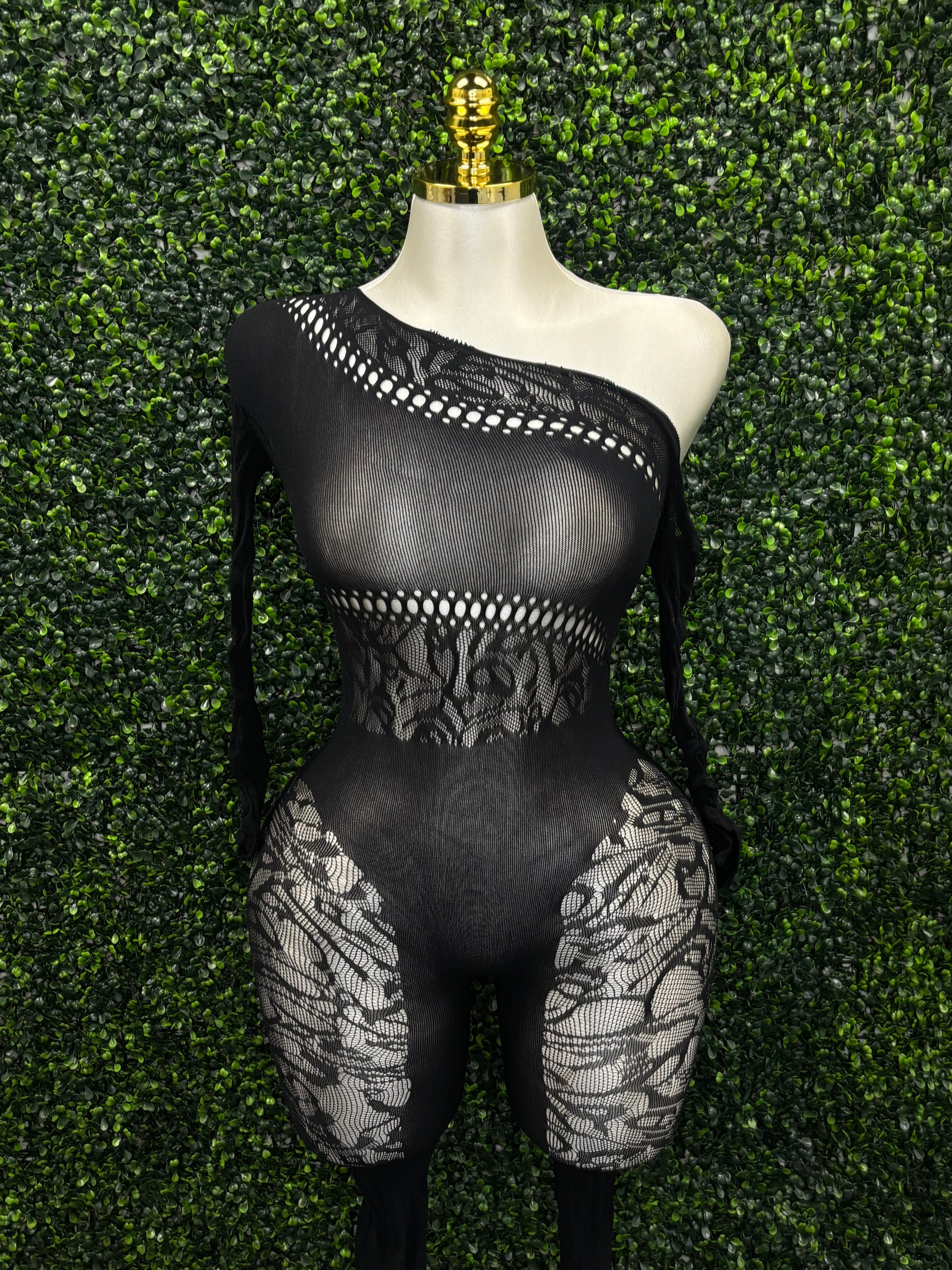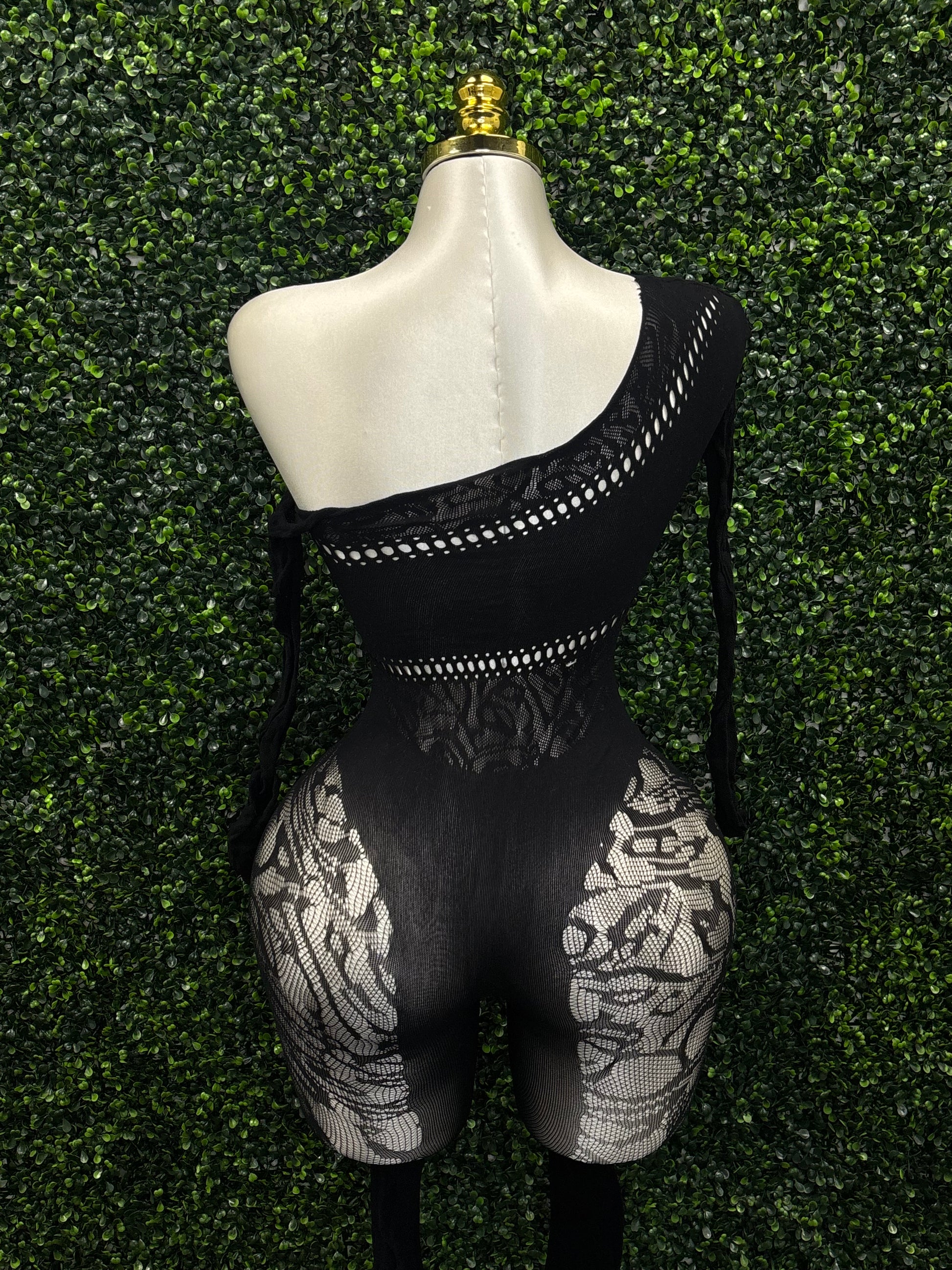 Turn heads in our “La Pantera” Jumpsuit — a daring one-shoulder piece that blends sheer mesh and lace to sculpt every curve. Featuring intricate cutouts, dramatic detailing, and bold asymmetry, this look is made for the fearless. Perfect for a night out, a private moment, or whenever you’re ready to dominate the room.